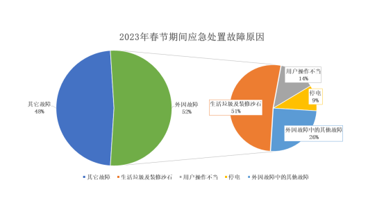 据统计,2022年,电梯外因故障占比高达61.03%,2023年春节期间应急处置故障原因主要为外因故障