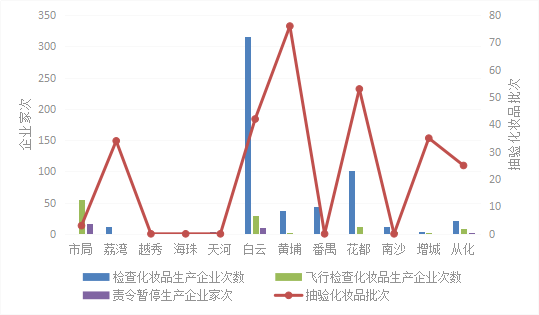 注:2020年第三季度黄埔区除抽验76批化妆品进行产品质量检验外,还抽验1376批产品标签标识等内容。